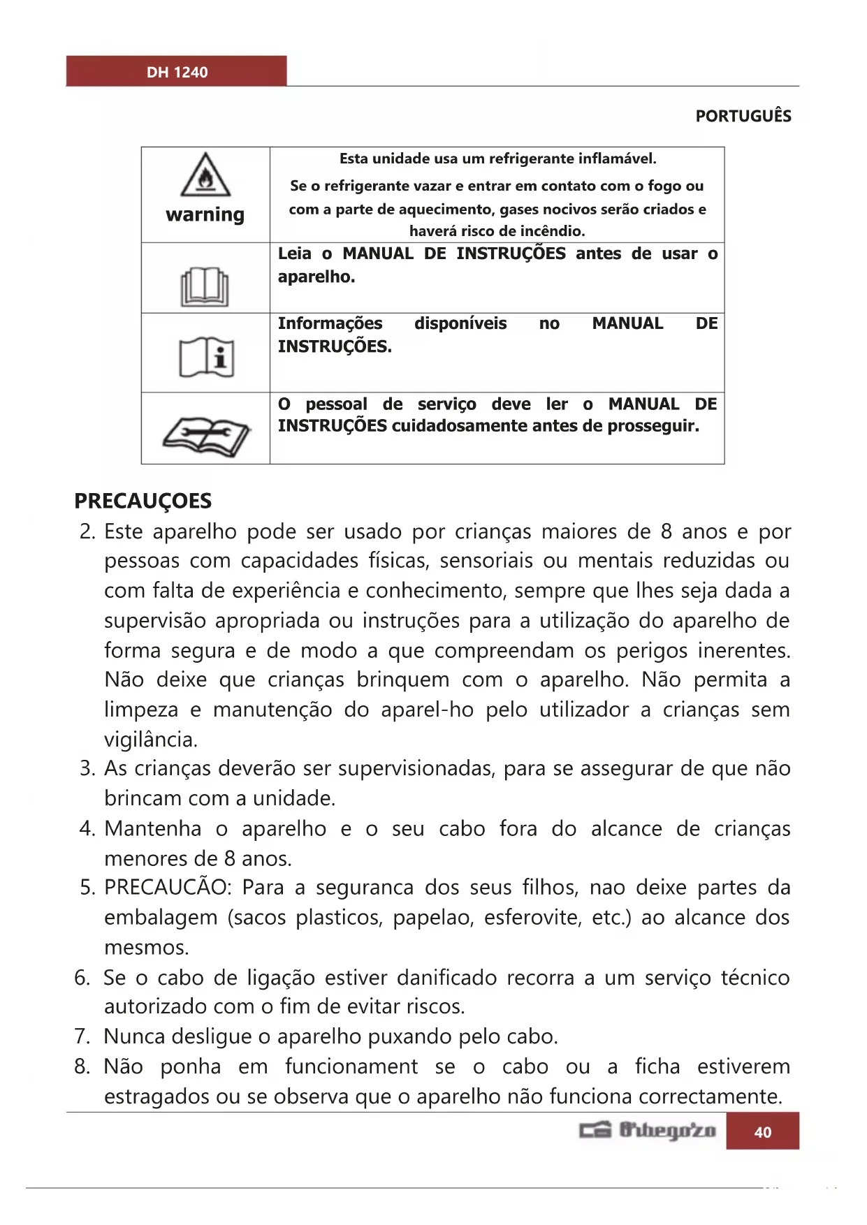 MANUAL DE UTILIZADOR DH 1240 Orbegozo