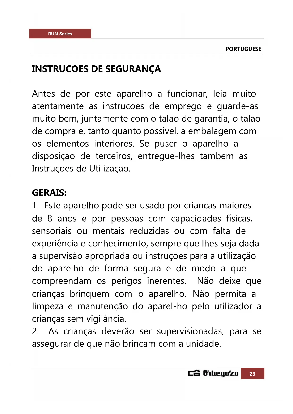 Encontre gratuitamente o manual do aparelho RUN 1500 Orbegozo em formato PDF.