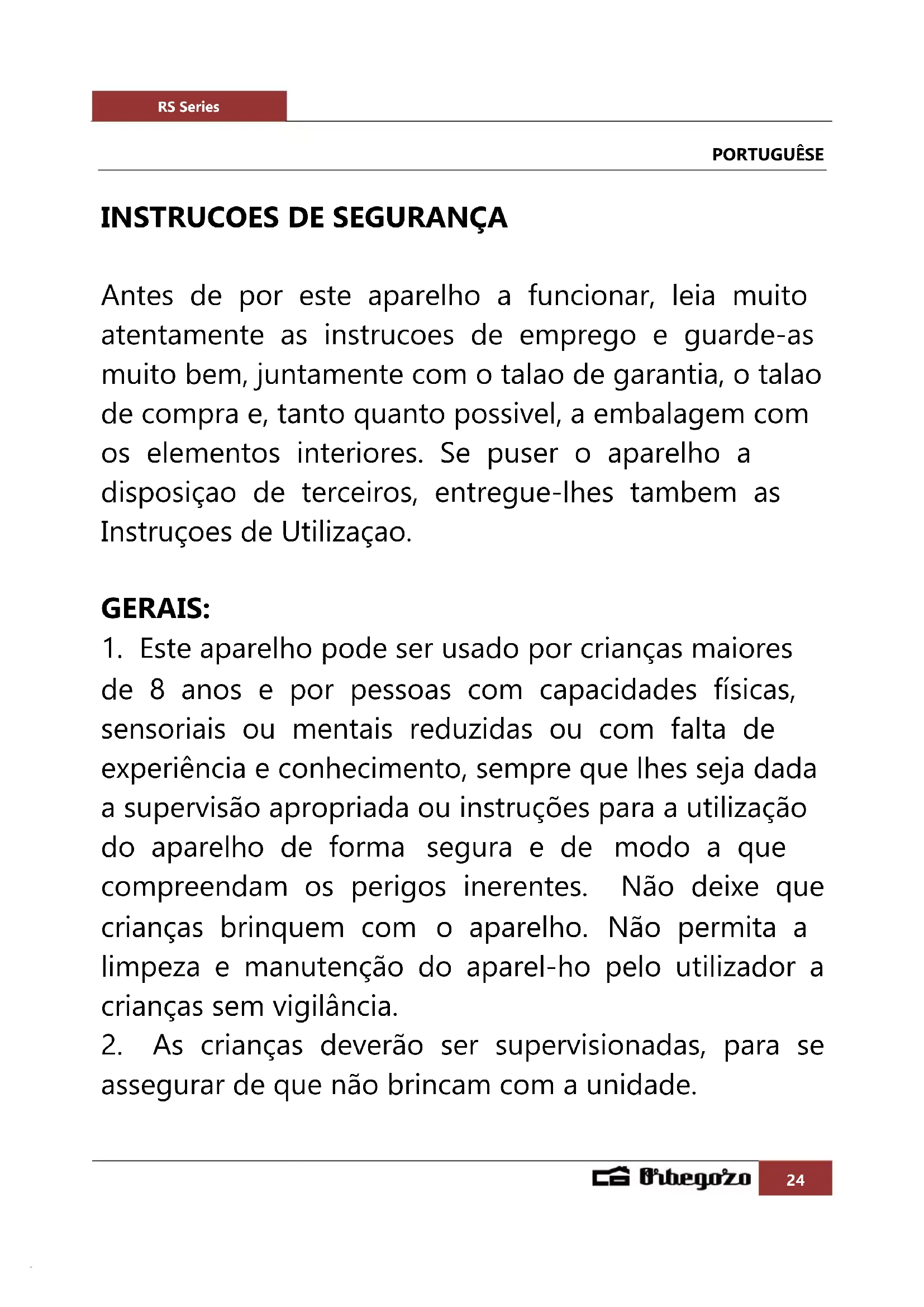 MANUAL DE UTILIZADOR RS 2000 Orbegozo