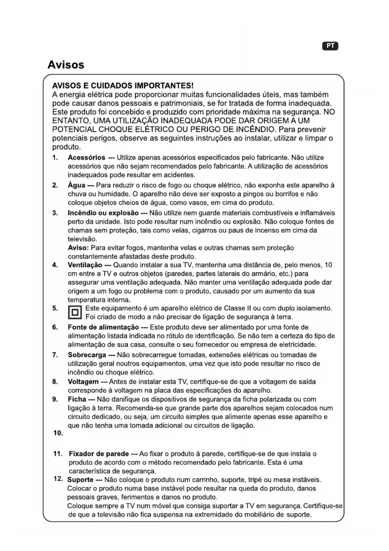 - Use apenas móveis que possam suportar com segurança o aparelho de televisão.