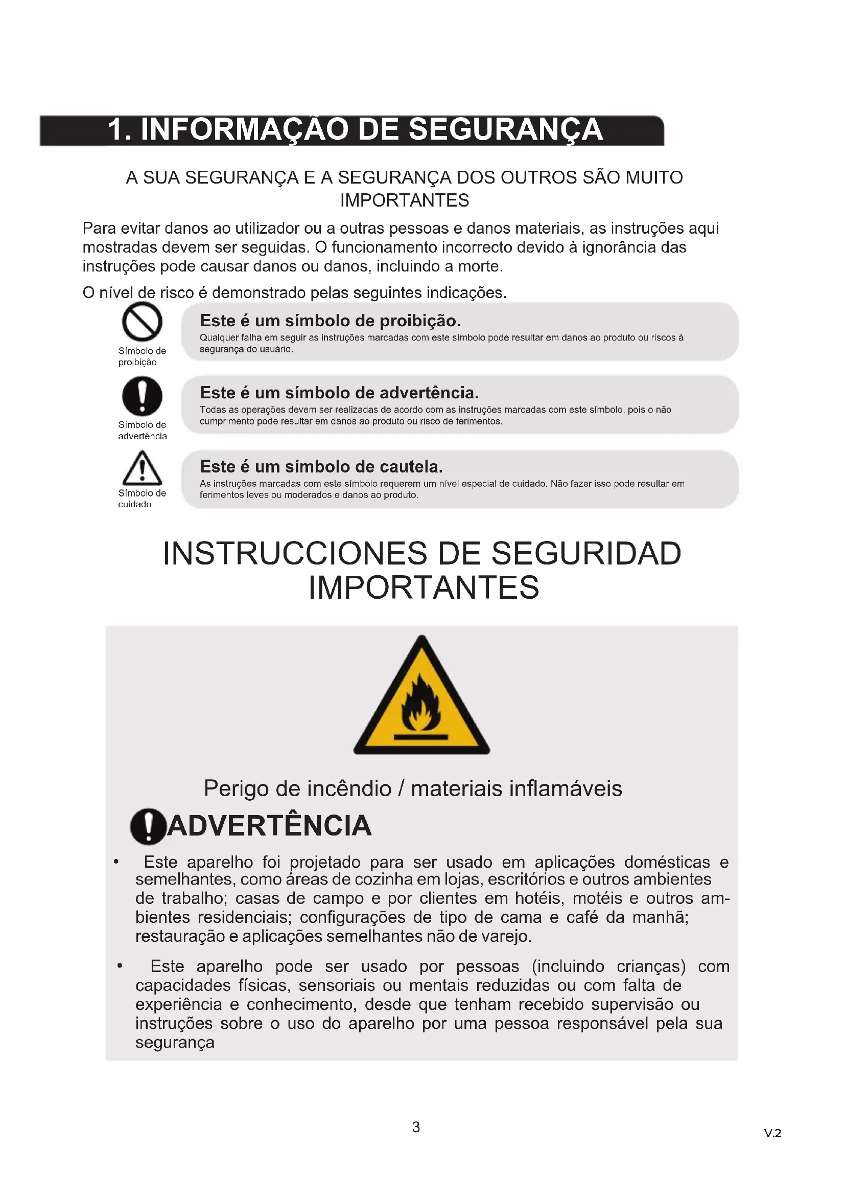 - Este aparelho pode ser usado por pessoas (incluindo crianças) com capacidades físicas, sensoriais ou mentais reduzidas ou com falta deexperiência e conhecimento, desde que tenham recebido supervisão ouinstruções sobre o uso do aparelho por uma pessoa responsável pela suasegurança V.24