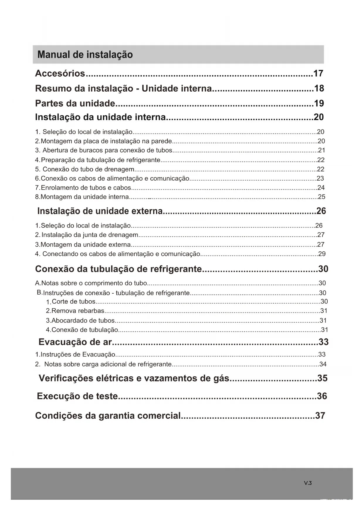 Instalação da junta de drenagem.................................................................................................27 3. Montagem da unidade externa.....................................................................................................27