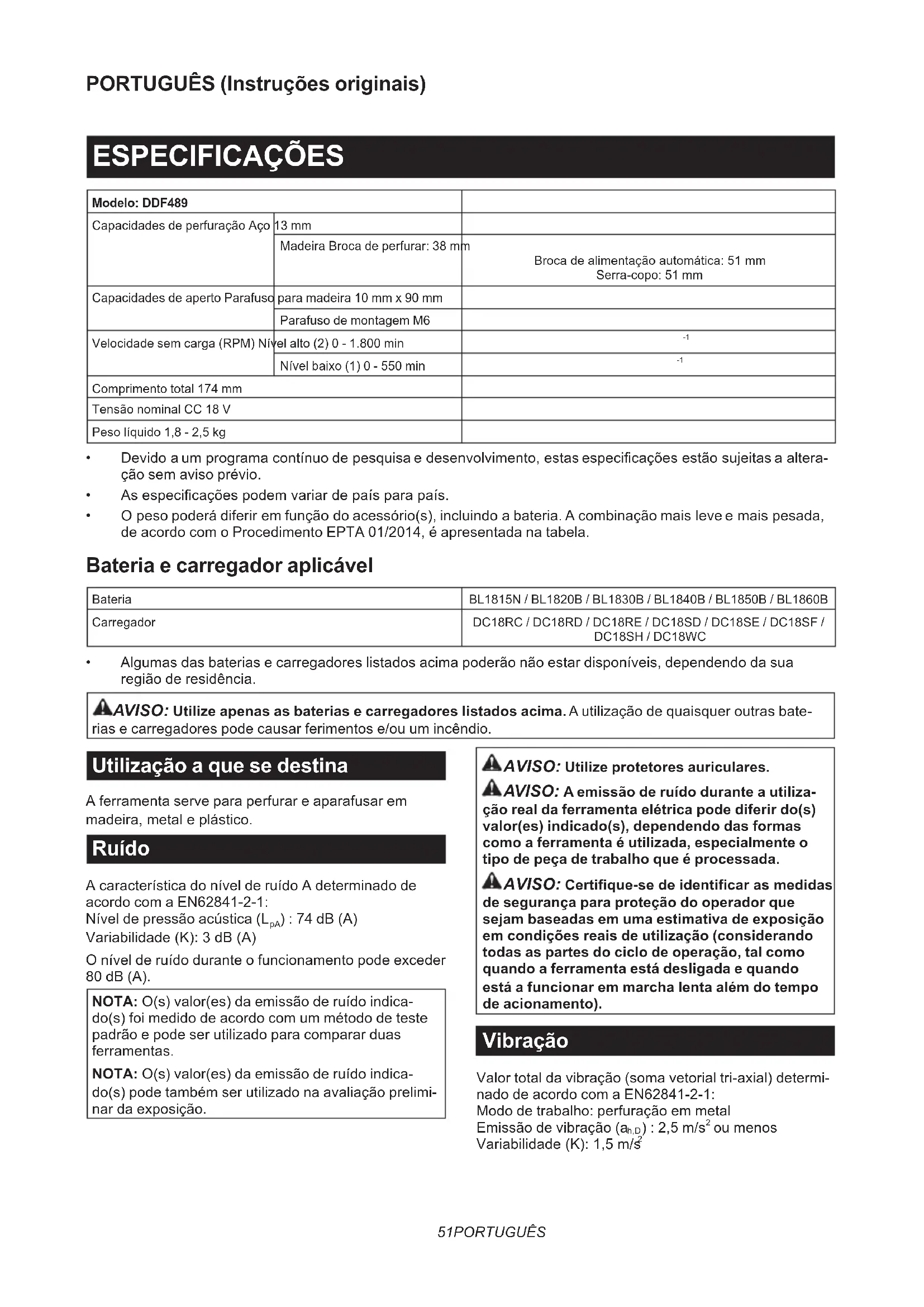 Encontre gratuitamente o manual do aparelho DDF489 MAKITA em formato PDF.