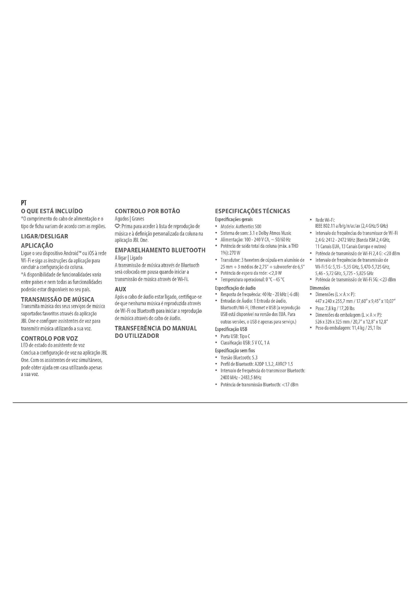 MANUAL DE UTILIZADOR Authentics 500 JBL