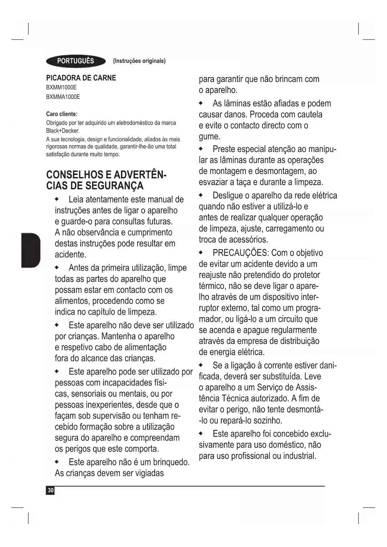 BXMM1000E BXMMA1000E Caro cliente: Obrigado por ter adquirido um eletrodoméstico da marca Black+Decker. A sua tecnologia, design e funcionalidade, aliados às mais rigorosas normas de qualidade, garantir-lhe-ão uma total satisfação durante muito tempo.