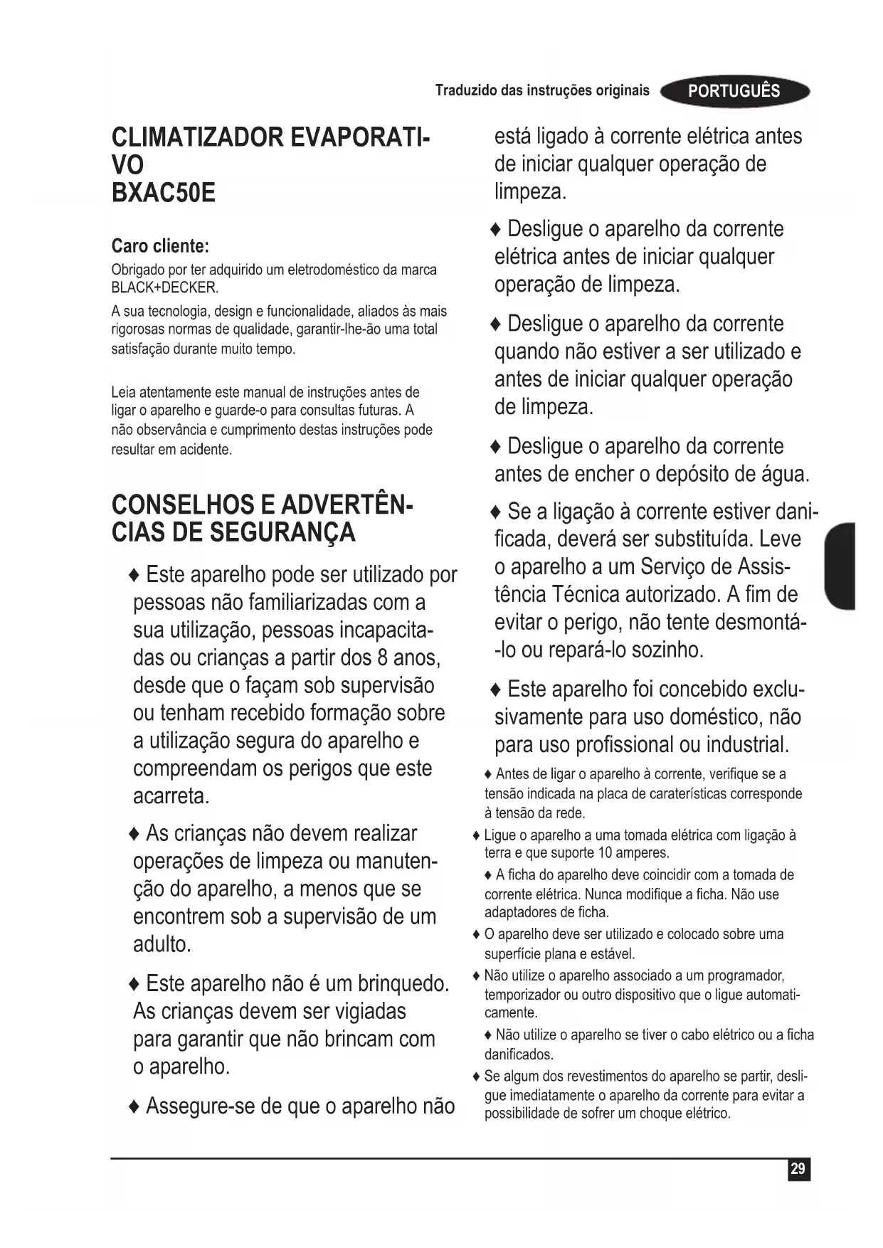 MANUAL DE UTILIZADOR BXAC50E BLACK & DECKER