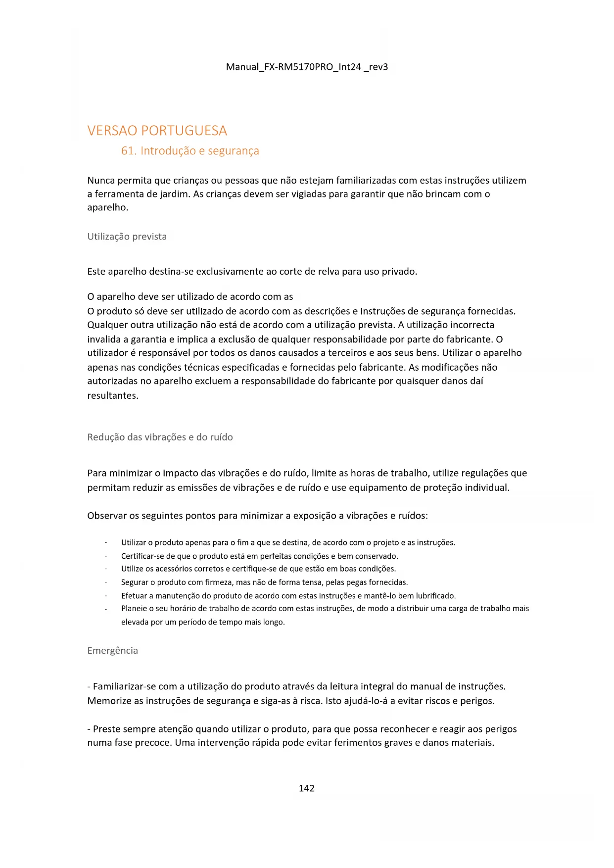 Nível de potência sonora do cortador de relva: 98dBManual_FX-RM5170PRO_Int24 _rev3 146Manual_FX-RM5170PRO_Int24 _rev3