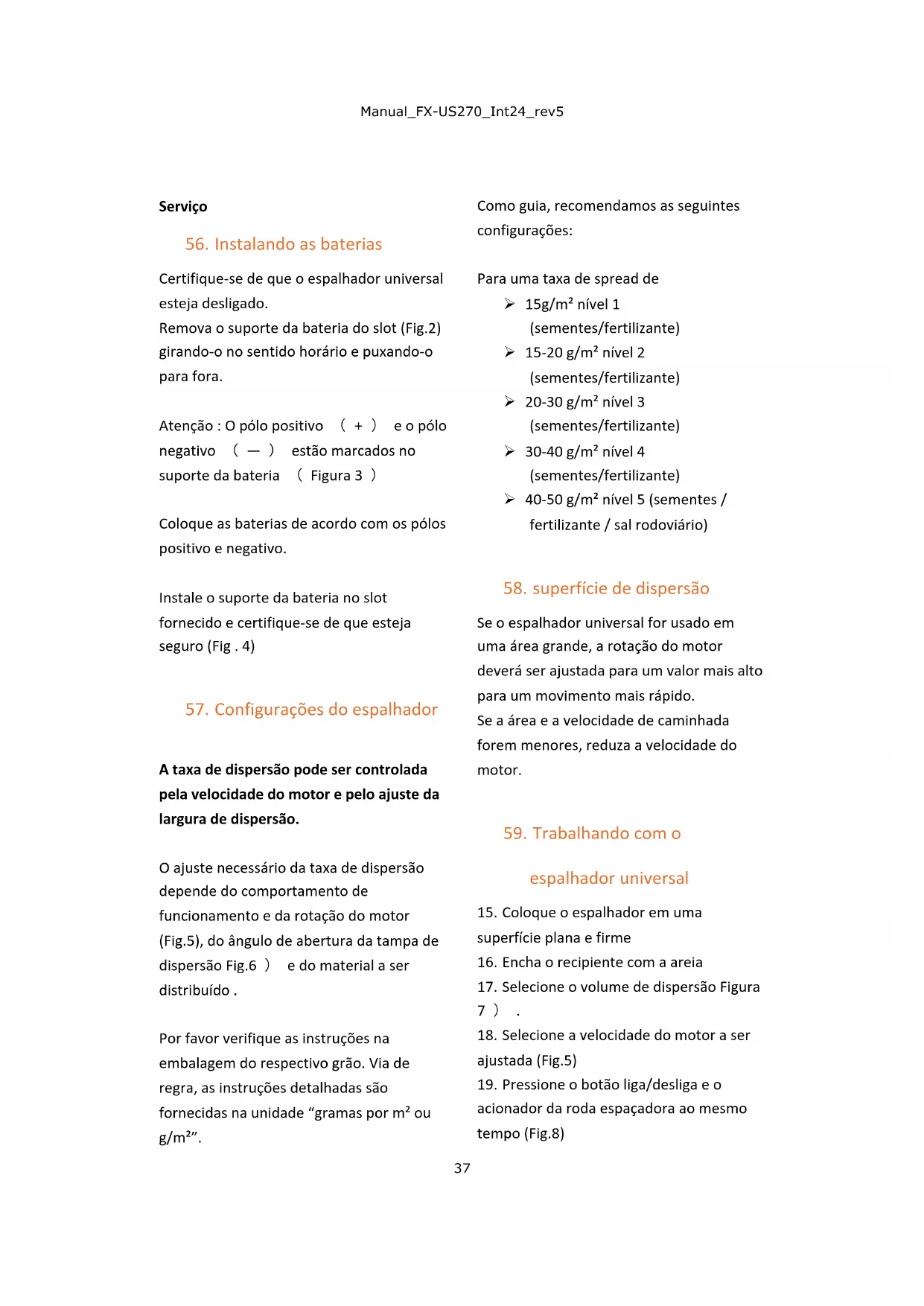 57. Configurações do espalhador ................................................................................ 37