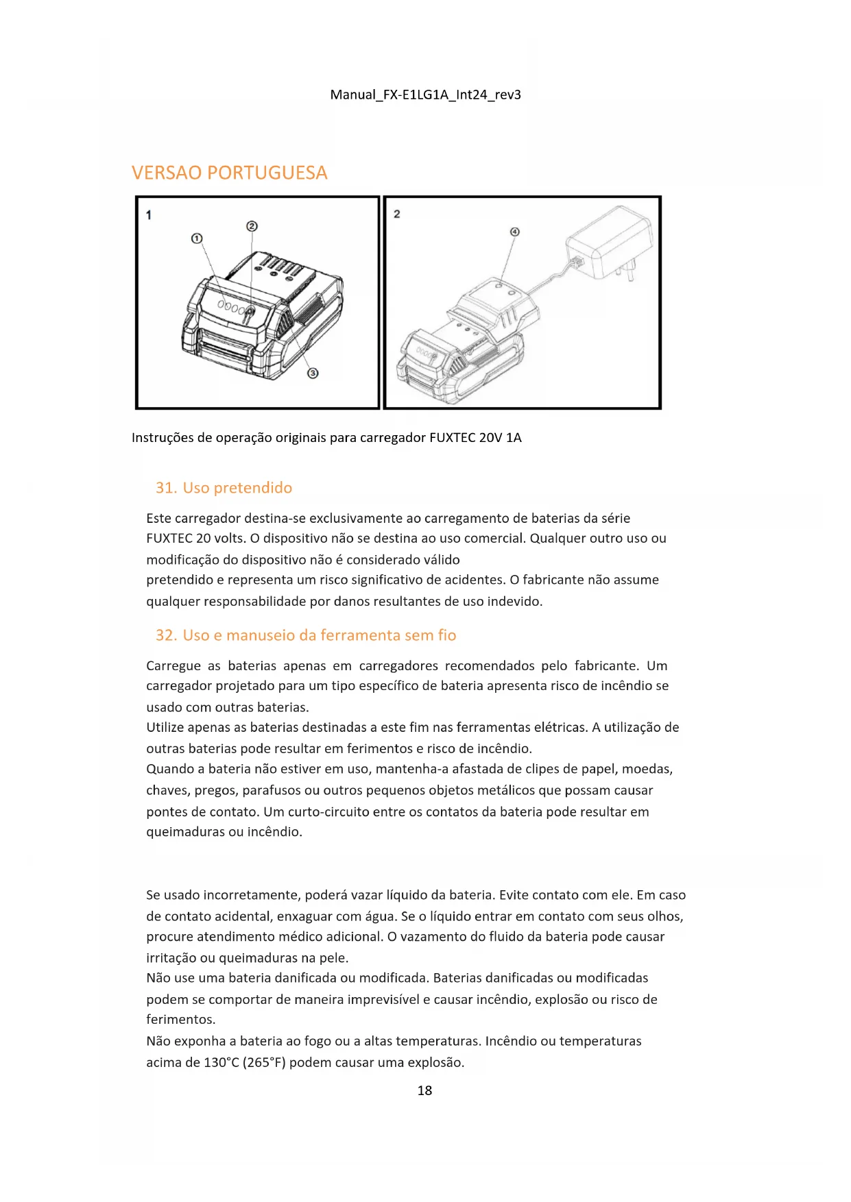 FX-E1LG1A - Carregador de pilhas Fuxtec - Manual de utilização gratuito