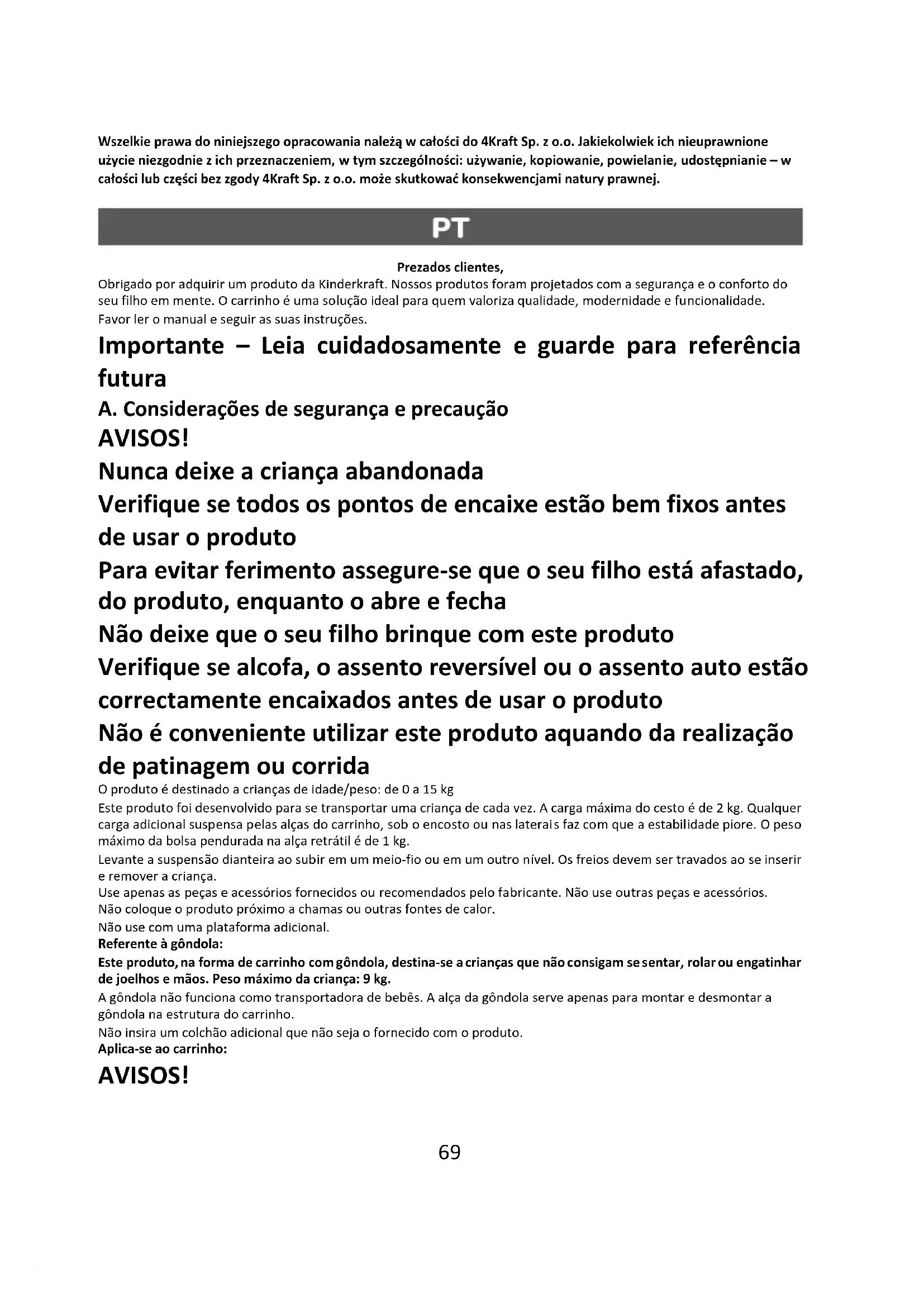 1. Todos os produtos Kinderkraft são cobertos por uma garantia de 24 meses. O período de proteção da garantia começa