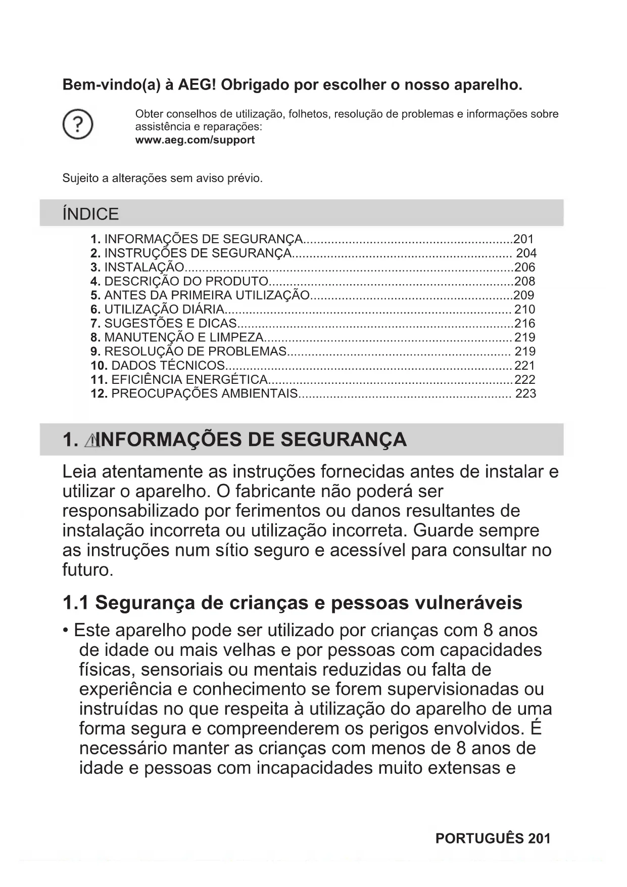 - Este aparelho pode ser utilizado por crianças com 8 anos de idade ou mais velhas e por pessoas com capacidades físicas, sensoriais ou mentais reduzidas ou falta de experiência e conhecimento se forem supervisionadas ou instruídas no que respeita à utilização do aparelho de uma forma segura e compreenderem os perigos envolvidos. É necessário manter as crianças com menos de 8 anos de idade e pessoas com incapacidades muito extensas e PORTUGUÊS 201complexas afastadas do aparelho, a menos que sejam constantemente vigiadas.
