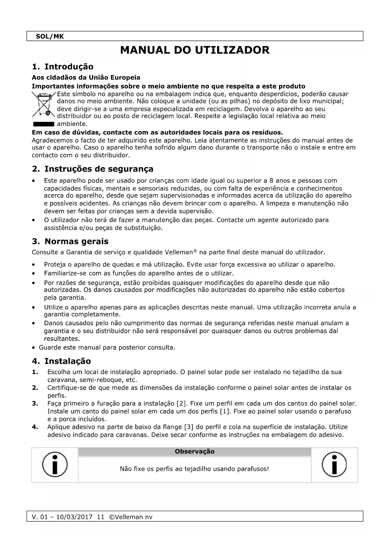 SOL/MK - Painel solar Perel - Manual de utilização gratuito