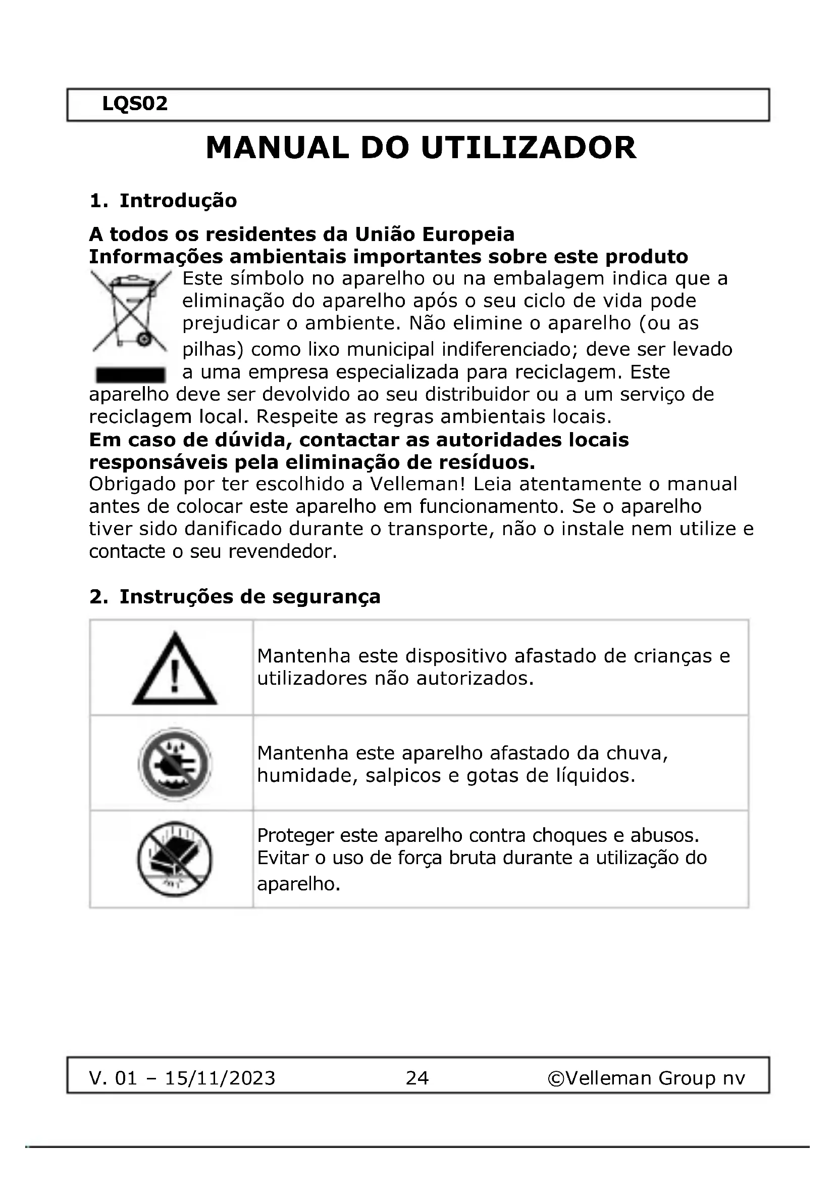 Consulte a Garantia de qualidade e assistência técnica do Velleman Group NV® nas últimas páginas deste manual.