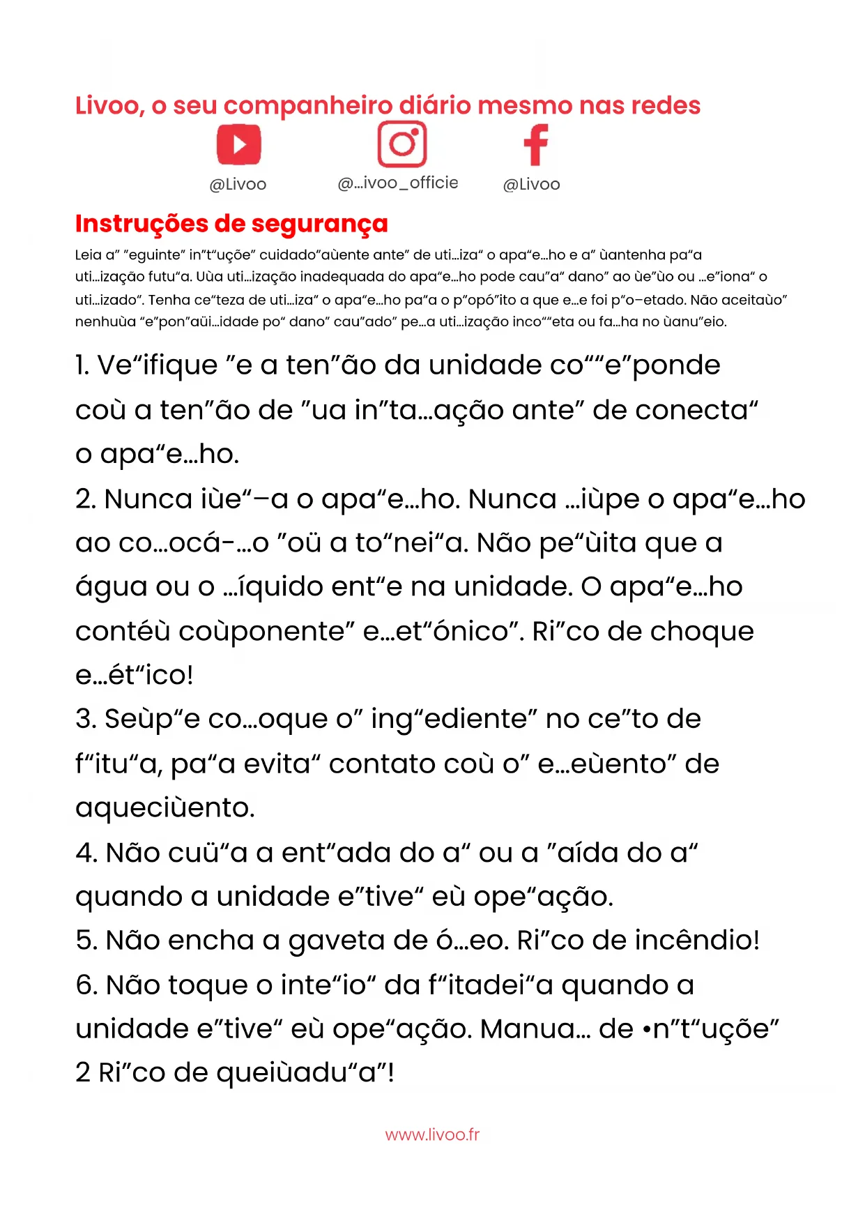 unidade estiver em operação. Manual de Instruções 2 Risco de queimaduras! @livoo_officiel