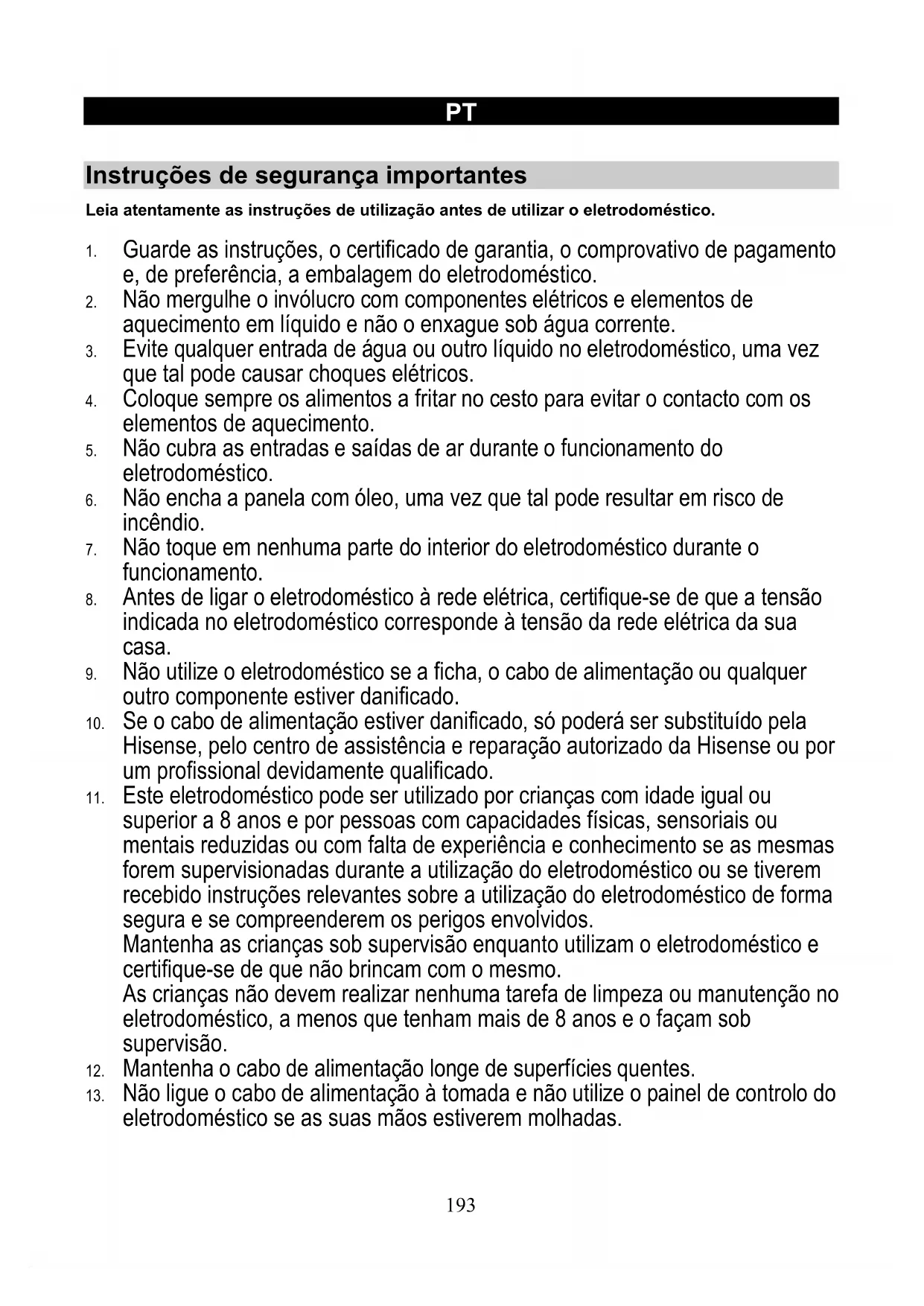 HAF2900D - Fritadeira HISENSE - Manual de utilização gratuito