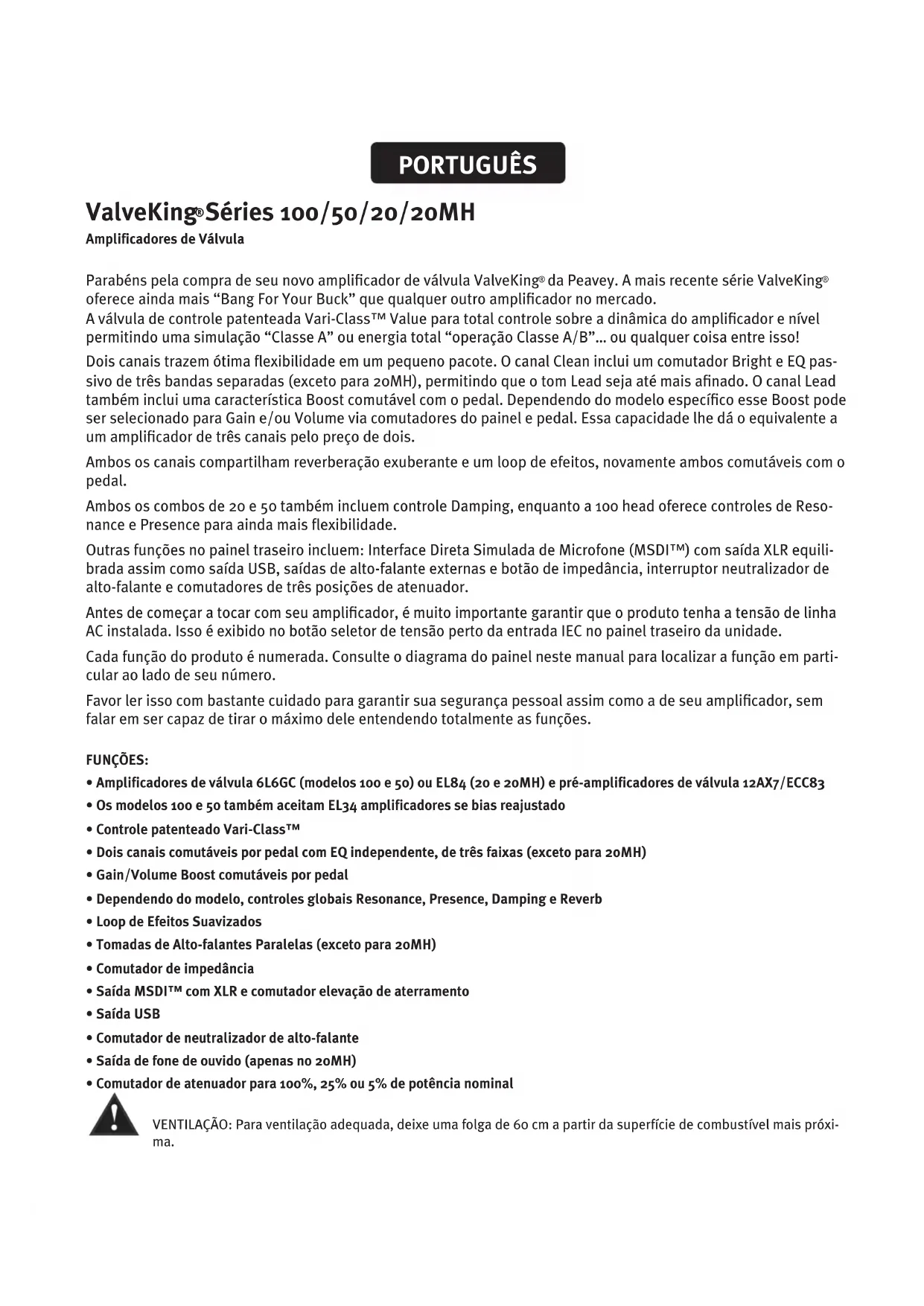 MANUAL DE UTILIZADOR ValveKing 20 MH PEAVEY