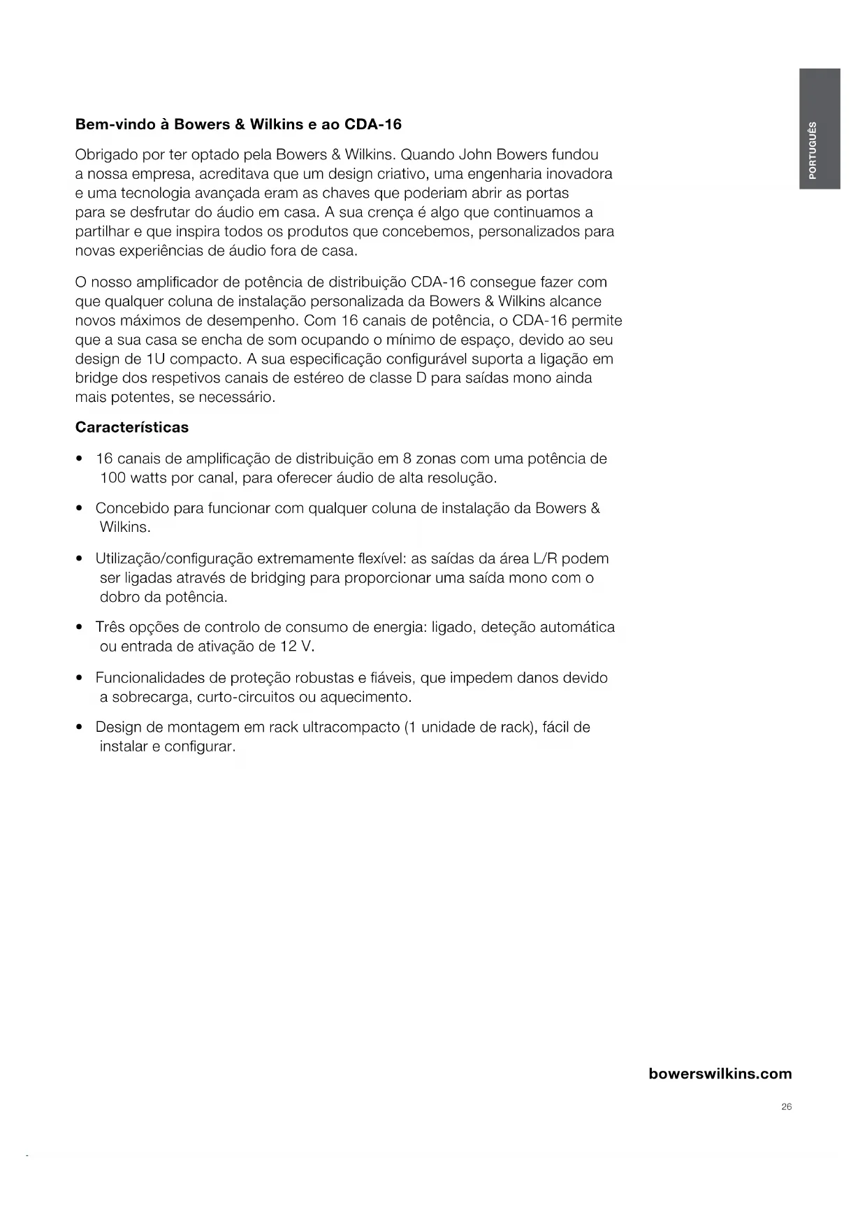 Encontre gratuitamente o manual do aparelho CDA-16 BOWERS & WILKINS em formato PDF.