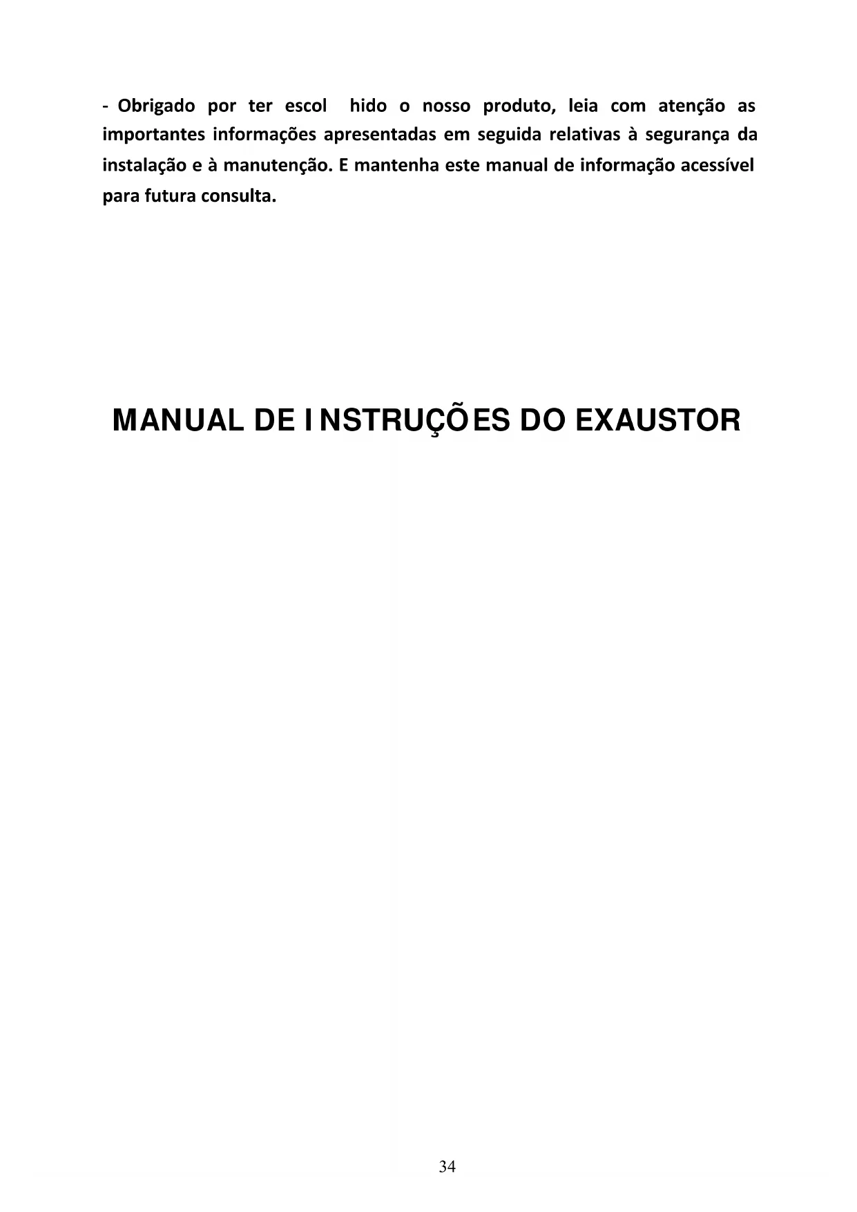 - O exaustor não deverá ser utilizado por crianças ou pessoas que não possuam instrução para a sua utilização correta. MANUTENÇÃO