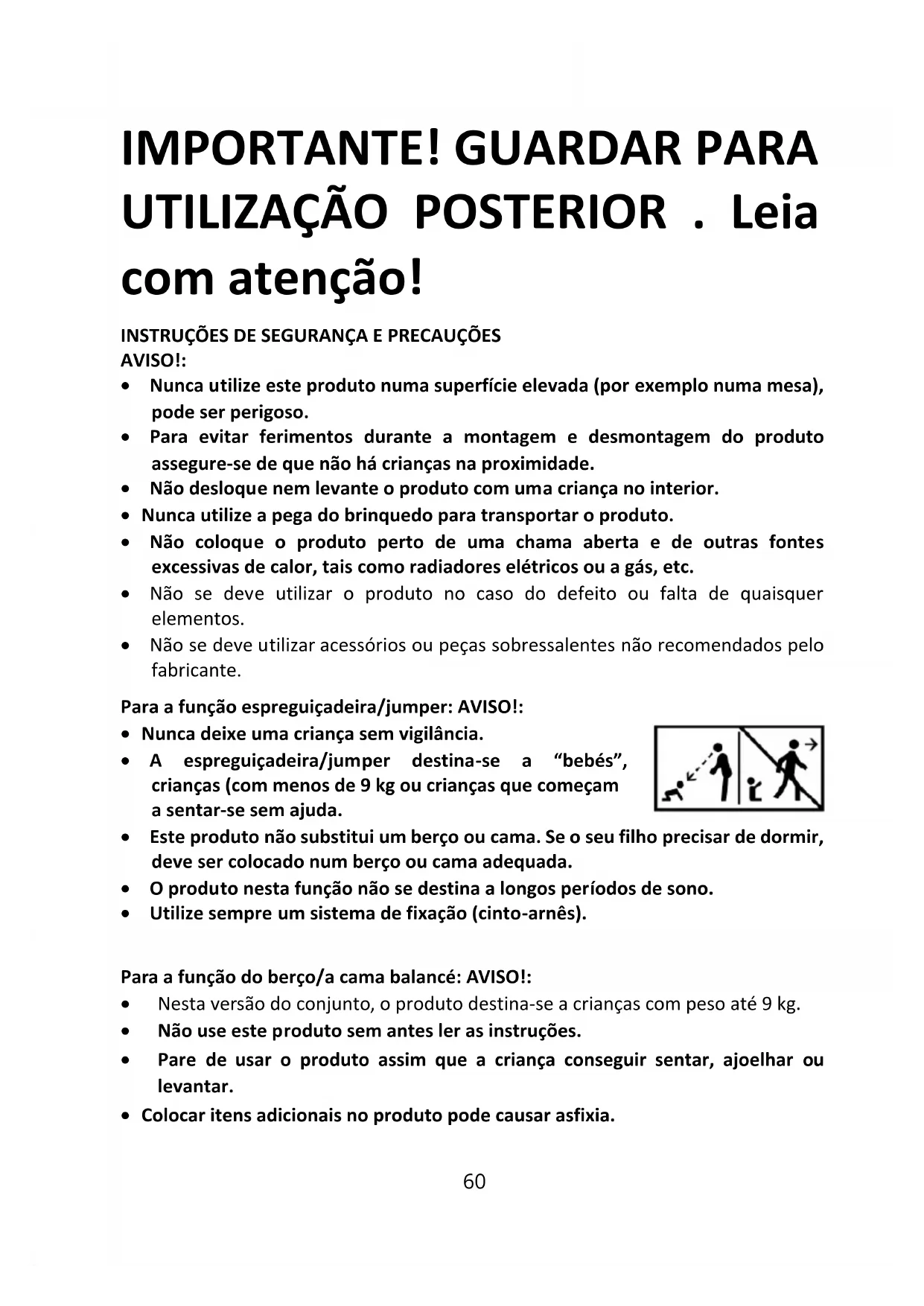 - Este produto não substitui um berço ou cama. Se o seu filho precisar de dormir, deve ser colocado num berço ou cama adequada.