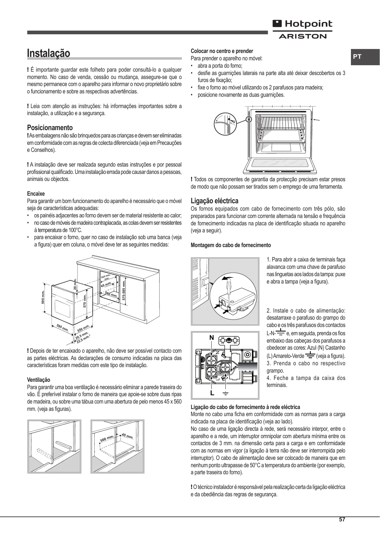 !Depos de ter encaixado o aparelho, não deve ser possivel contacto com as partes electrolycicas. As declarações de consumo indicadas na placá das caractéctricas foram medidas com este tipo de instalação.