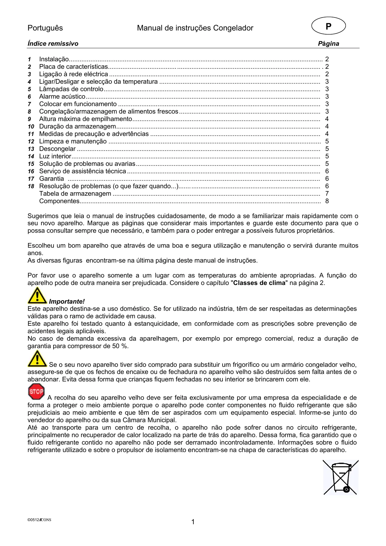 Português Manual de instruções Congelador Índice remissivo