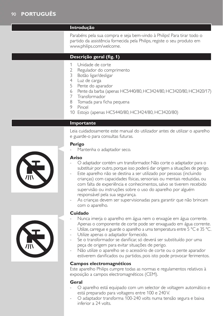 MANUAL DE UTILIZADOR HC3424/80 PHILIPS