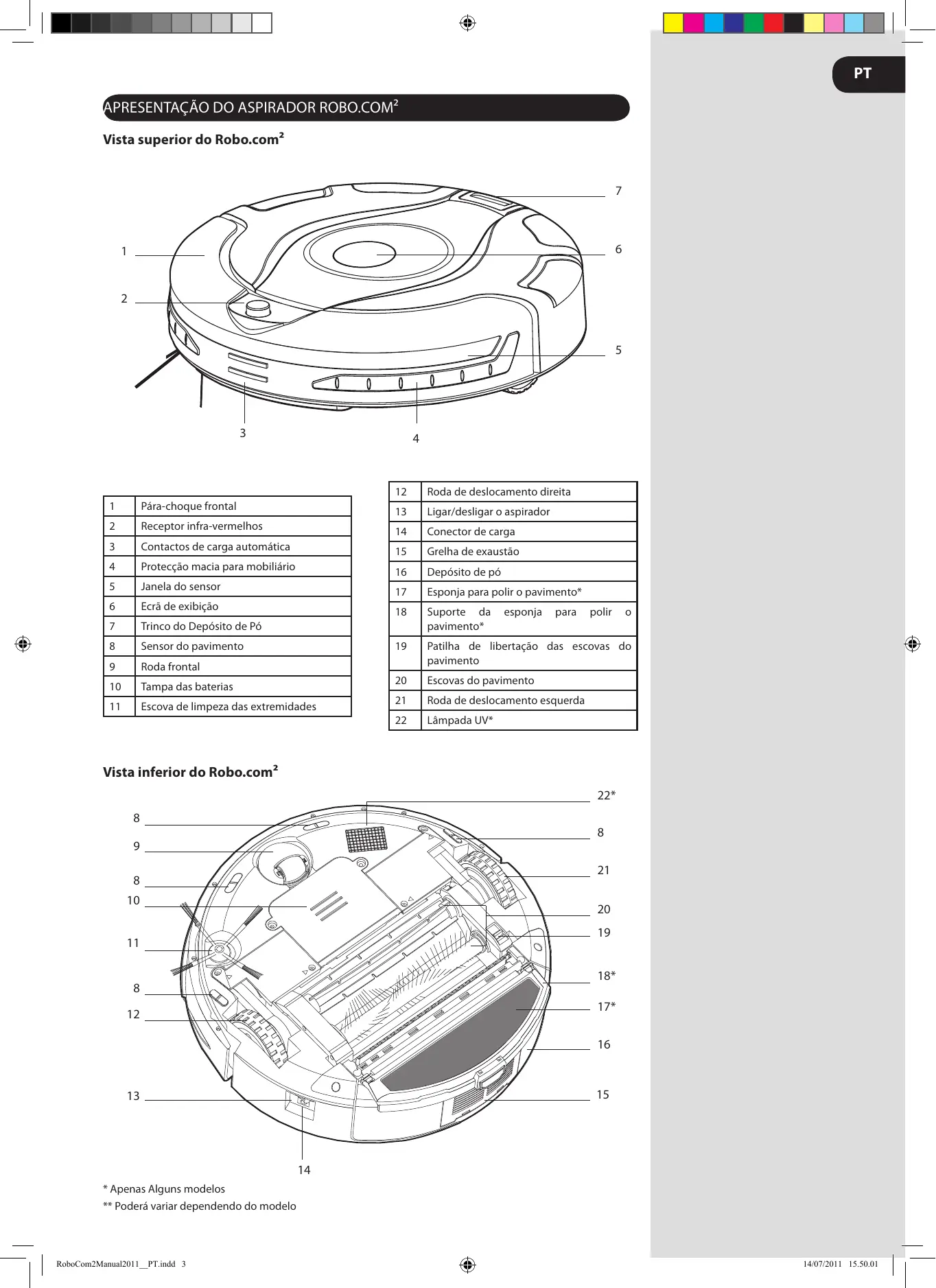 Encontre gratuitamente o manual do aparelho RBC040 ROBO.COM3 HOOVER em formato PDF.
