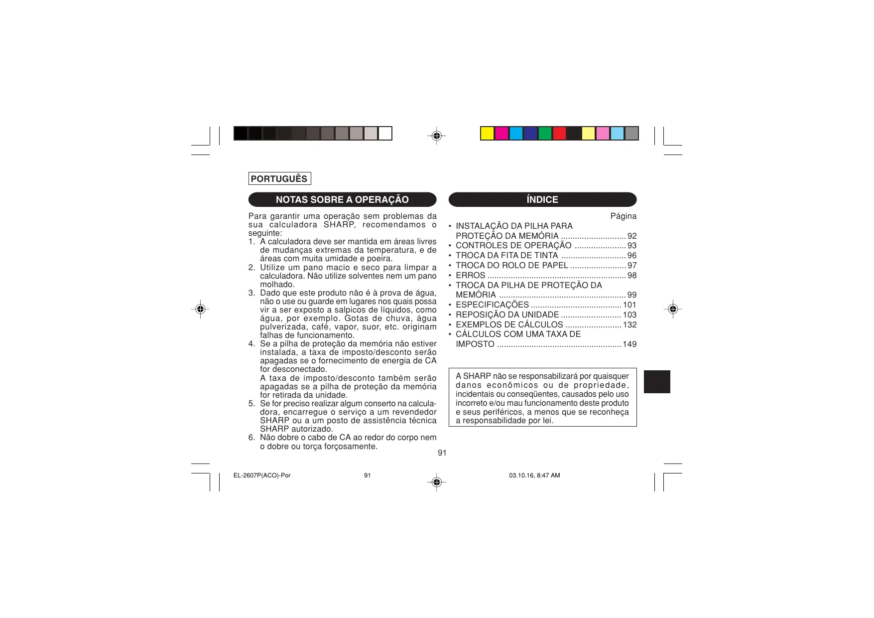 MANUAL DE UTILIZADOR EL-2607P/2607PG SHARP