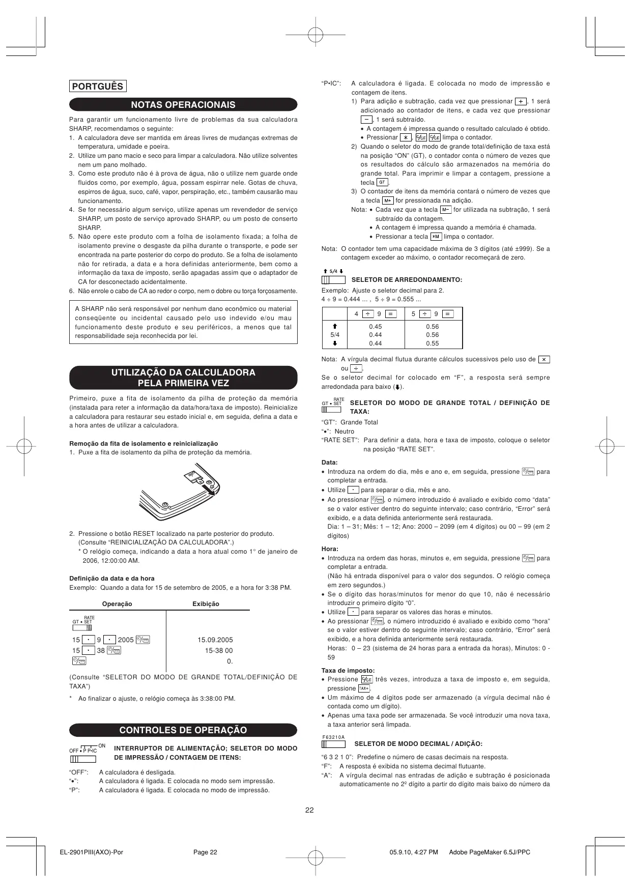 EL-2901PIII - Calculadora SHARP - Manual de utilização gratuito