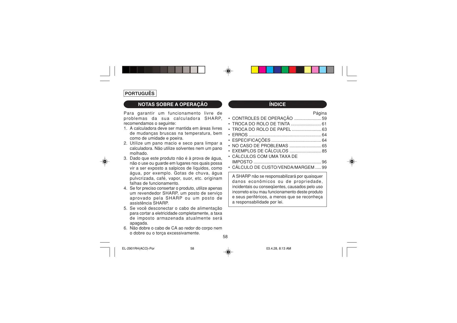 MANUAL DE UTILIZADOR EL-2901RH SHARP