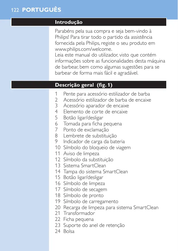 Leia cuidadosamente este manual do utiliser antes de utilizing a ámbuna de barbear e o sistemas SmartClean. Guarde este manual do'utilizar para una eventual consulta futura.