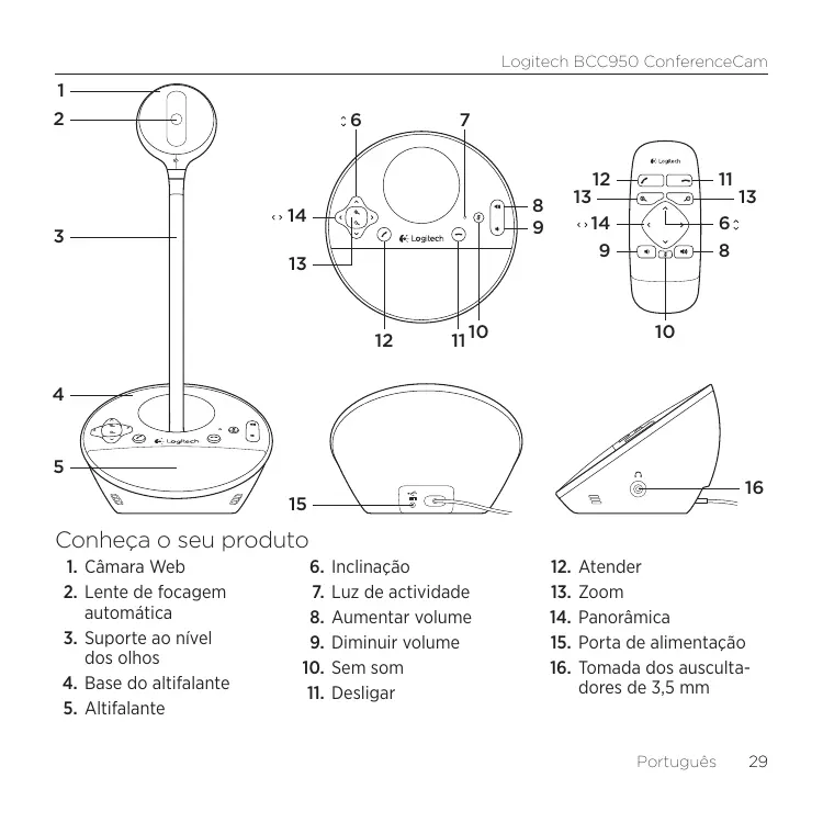 Baixe as instruções para o seu Câmara de conferência em formato PDF gratuitamente! Encontre o seu manual BCC950 - LOGITECH e retome o controlo do seu dispositivo eletrónico. Nesta página estão publicados todos os documentos necessários para a utilização do seu dispositivo. BCC950 da marca LOGITECH.