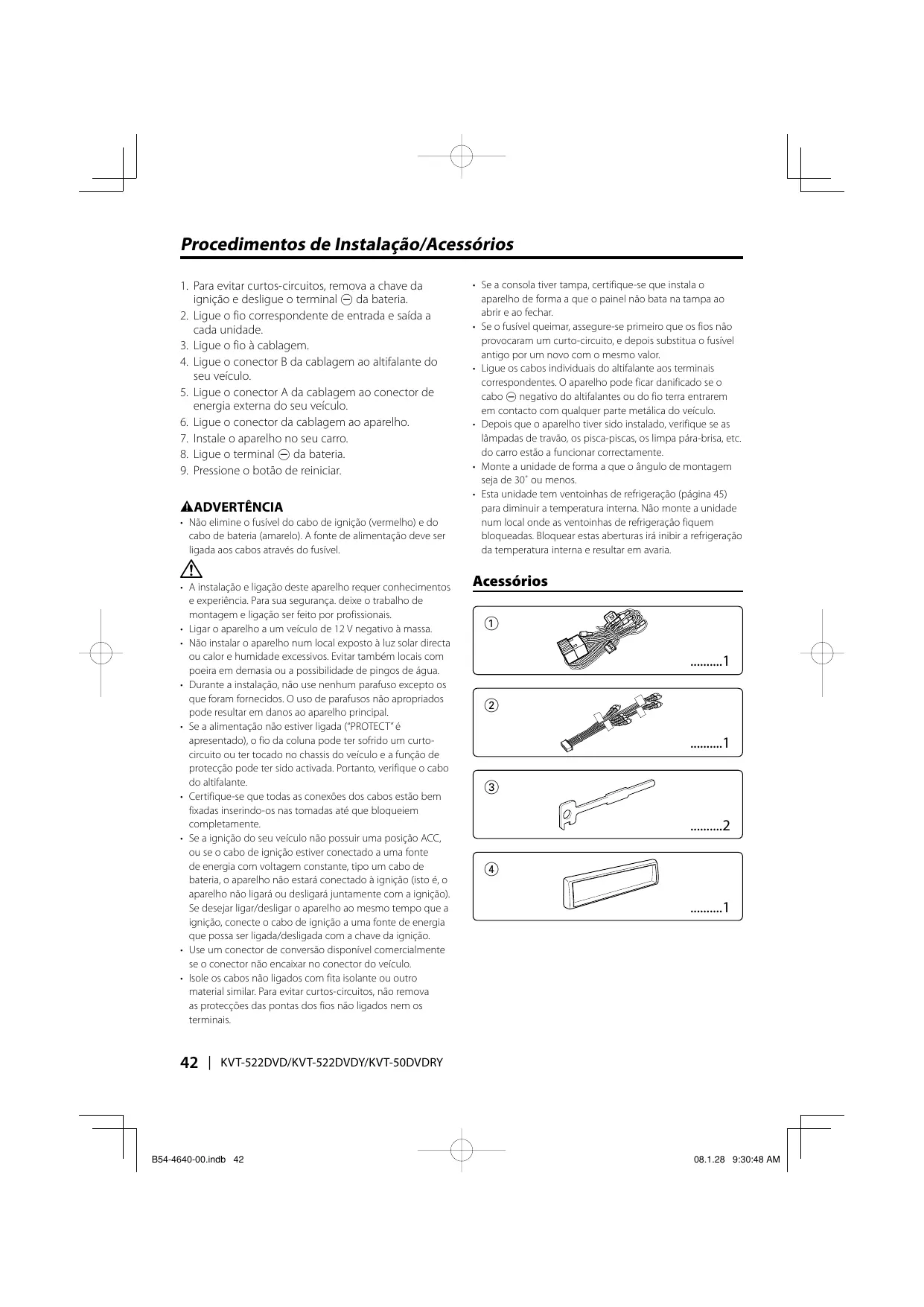 Procedimentos de Instalação/Acessórios
