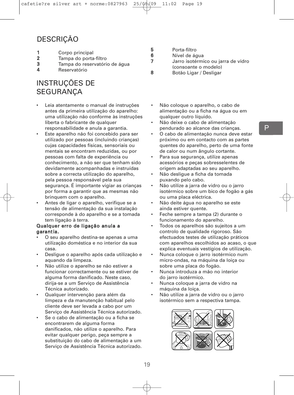 • No introduzca nunca la jarra de cristal en el lavavajillas. • No introduzca nunca la mano en el interior del recipiente isotérmico. • No utilice la jarra o el recipiente isotérmico sin la tapadera.