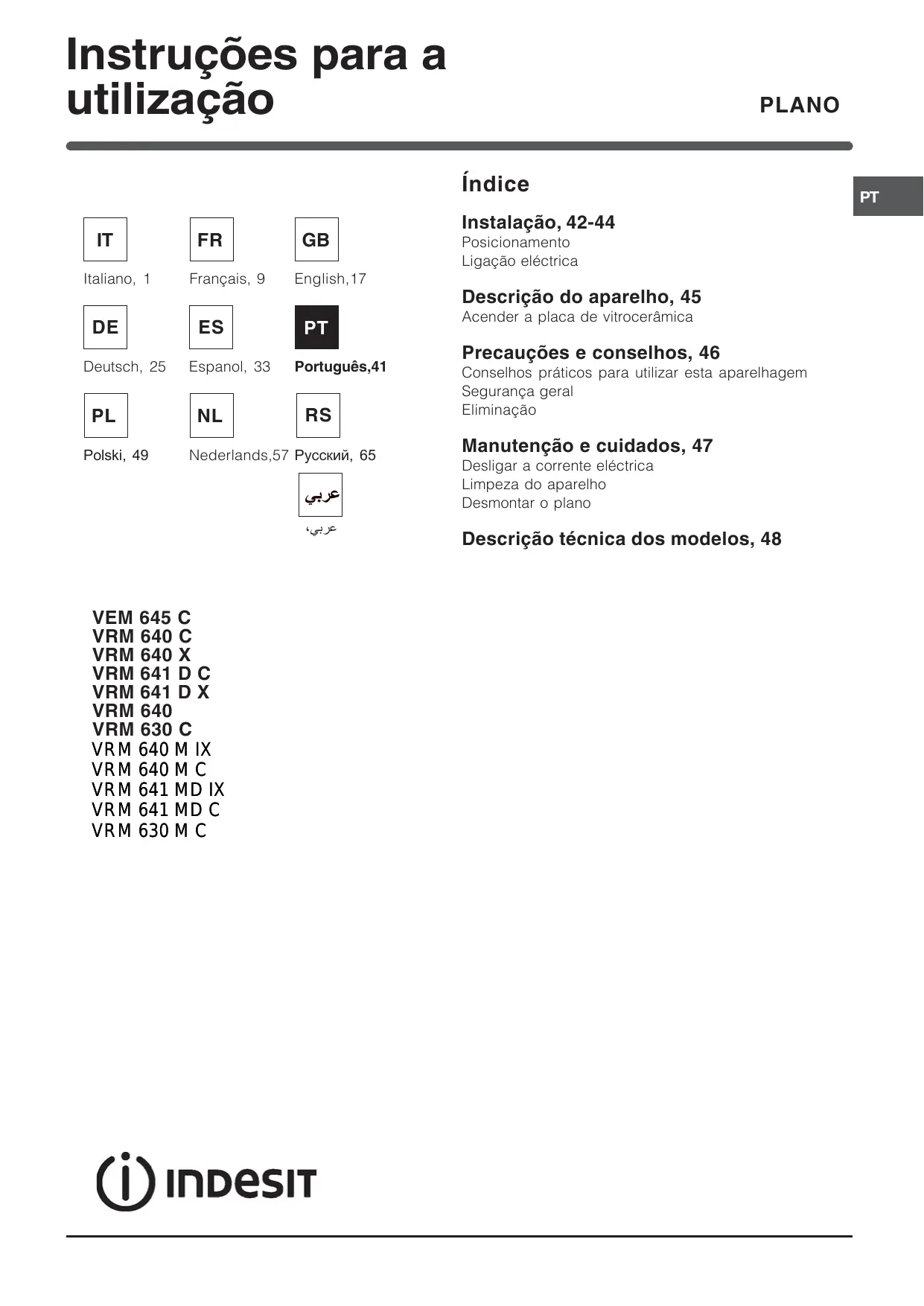Encontre gratuitamente o manual do aparelho VRM640C INDESIT em formato PDF.