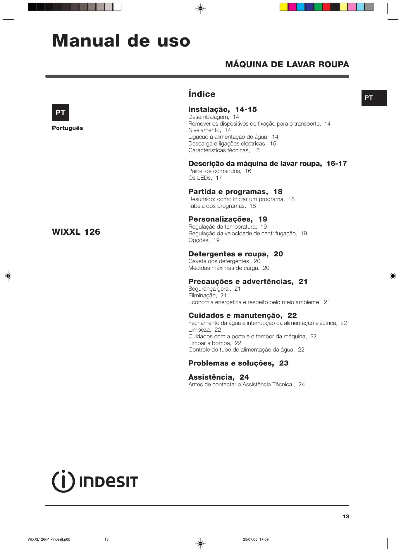 Encontre gratuitamente o manual do aparelho WIXXL126 INDESIT em formato PDF.