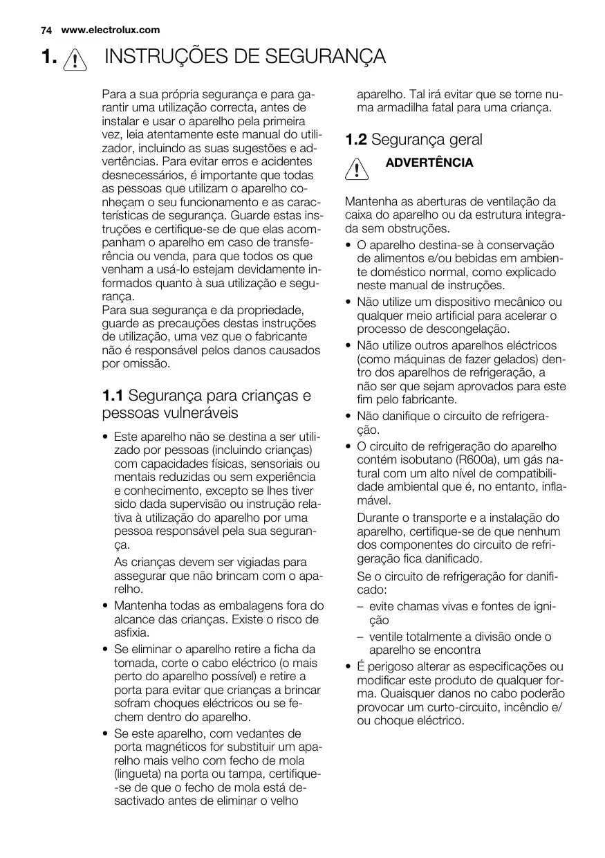 Recomendamos a utilização de peças de substituição originais. Quando contactar a Assistência, certifique-se de que tem os seguintes dados disponíveis. A informação encontra-se na placa de características. Modelo, PNC, Número de Série. Aviso / Cuidado - Informações de segurança. Informações gerais e conselhos úteis Informações ambientais Sujeito a alterações sem aviso prévio. 74 www.electrolux.com