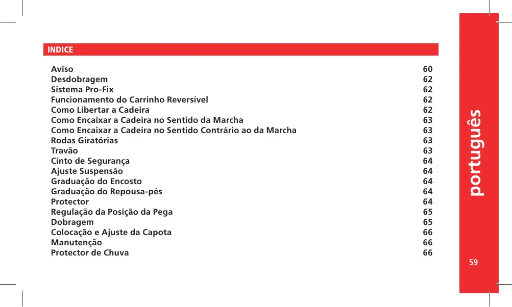 Comment Installer le Hamac dans le Sens Contraire de la Marche Roues Pivotantes Frein Ceinture de Sécurité Réglage Suspension Réglage du Dossier Réglage du Repose-jambes Garde-corps Réglage de la Position des Poignées Pliage Installation et Réglage de la Capote Entretien Habillage Pluie