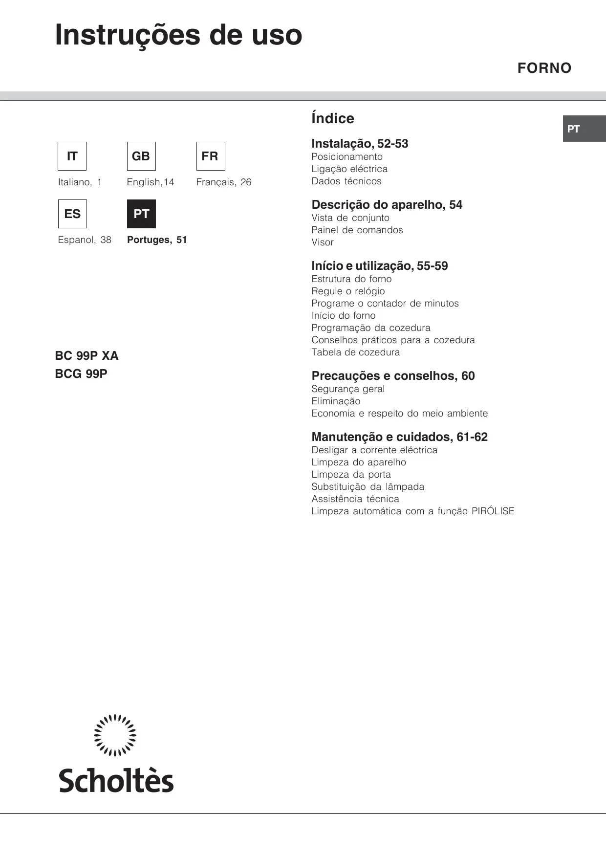 BCG 99 P - Forno SCHOLTES - Manual de utilização gratuito