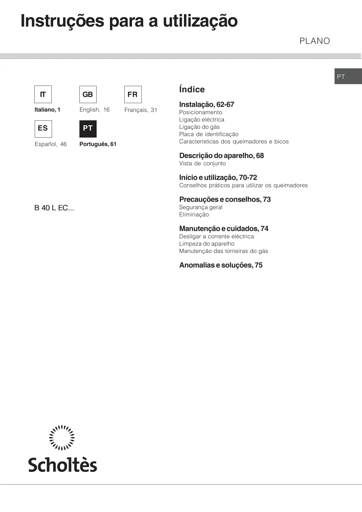 MANUAL DE UTILIZADOR B 40 L EC F SCHOLTES