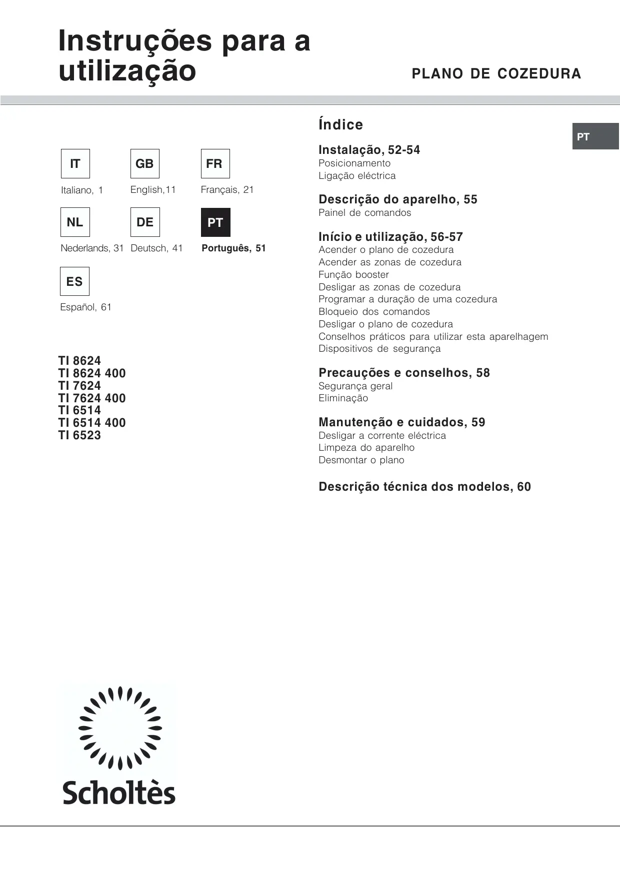 TI 7624 - Placa de cozinha SCHOLTES - Manual de utilização gratuito