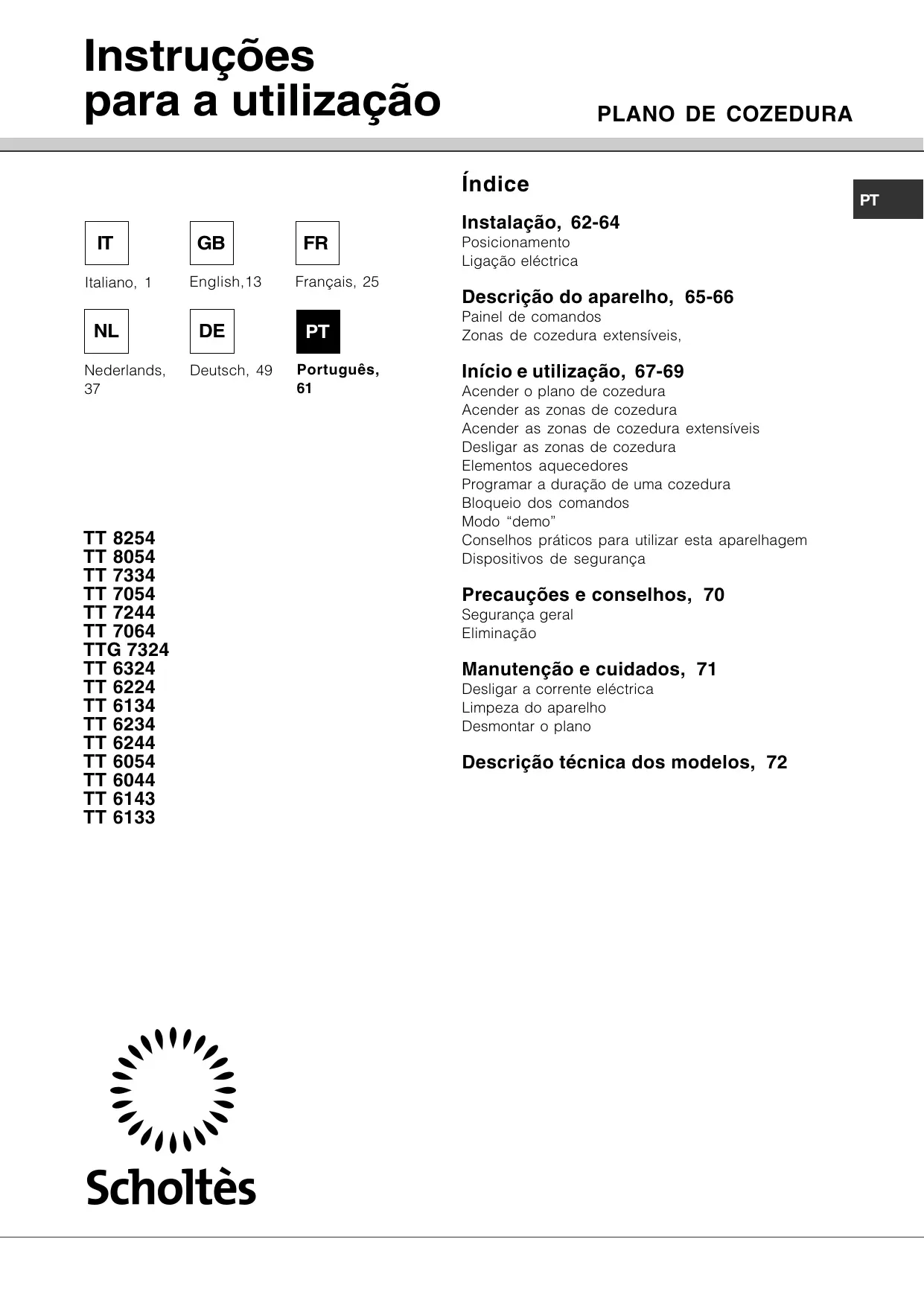 TT 6143 - Placa de cozinha SCHOLTES - Manual de utilização gratuito