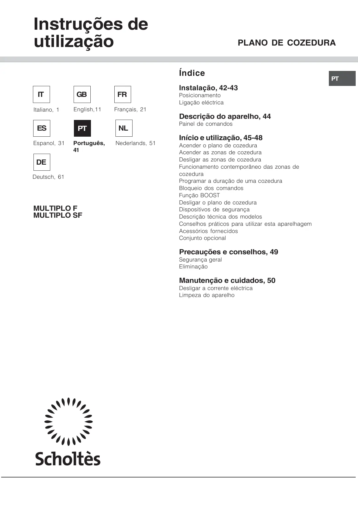 MULTIPLO F - Placa de cozinha SCHOLTES - Manual de utilização gratuito