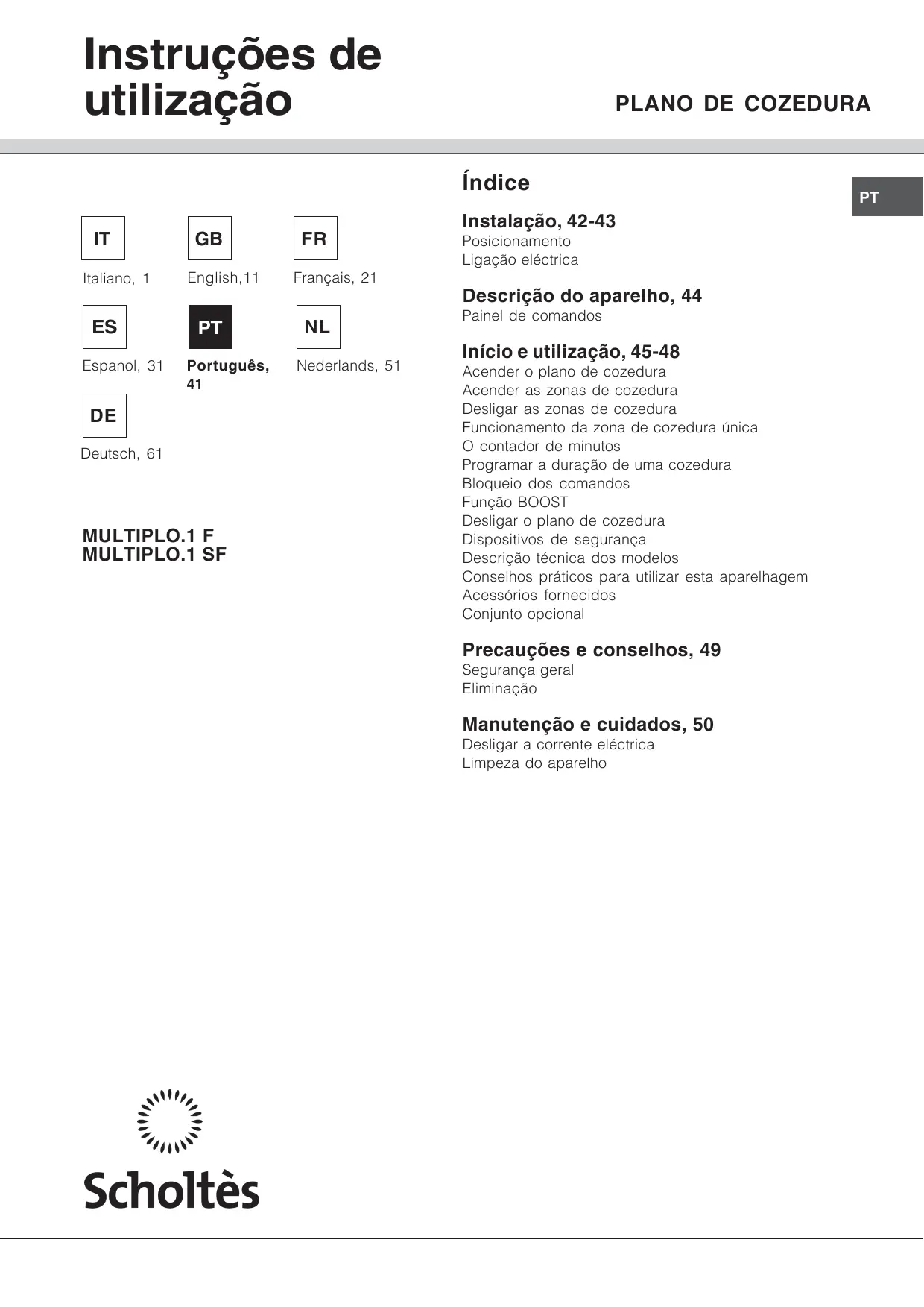 MULTIPLO.1 F - Placa de cozinha SCHOLTES - Manual de utilização gratuito