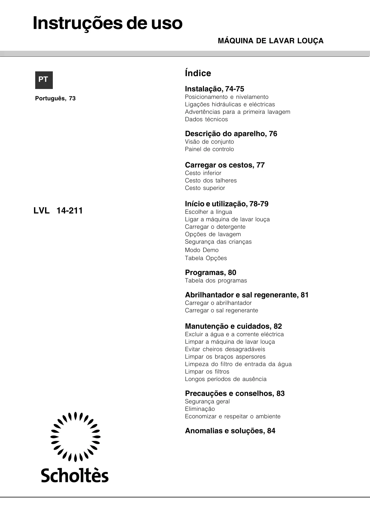 LVL 14-211 IX - Máquinas de lavar loiça SCHOLTES - Manual de utilização gratuito