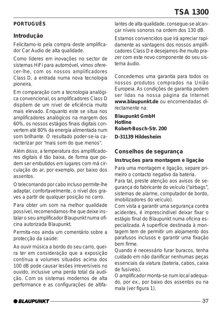 Encontre gratuitamente o manual do aparelho TSA 1300 BLAUPUNKT em formato PDF.