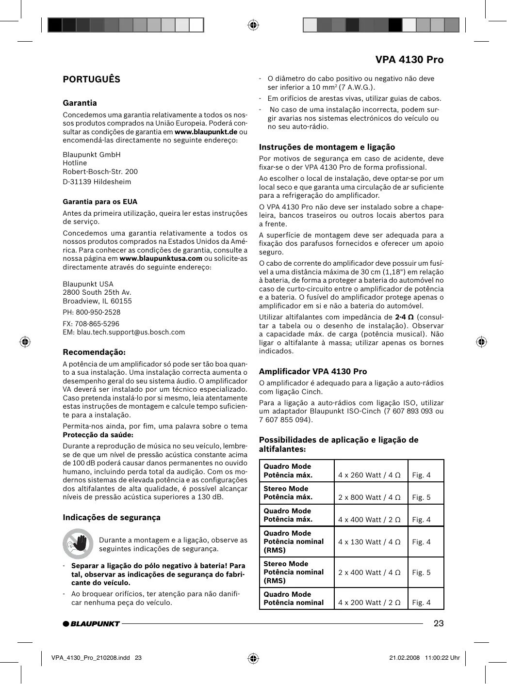 VELOCITY VPA 4130 PRO - Amplificador de áudio BLAUPUNKT - Manual de utilização gratuito