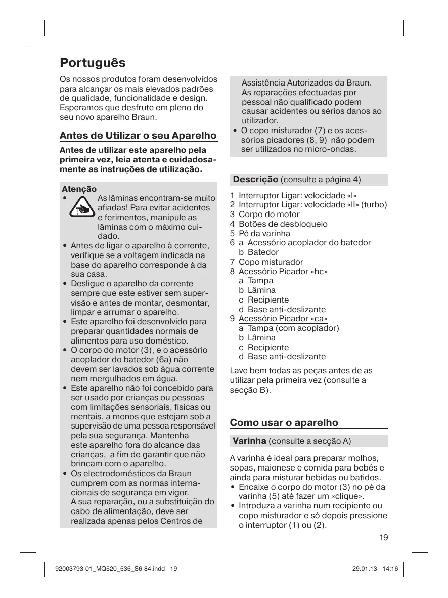 Encontre gratuitamente o manual do aparelho MQ525 BRAUN em formato PDF.