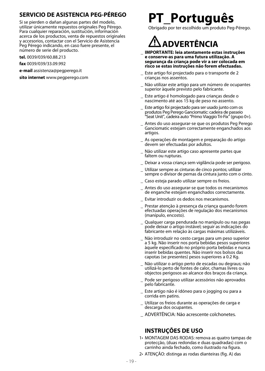 DUETTE SW - Carrinho de bebê PEG PEREGO - Manual de utilização gratuito