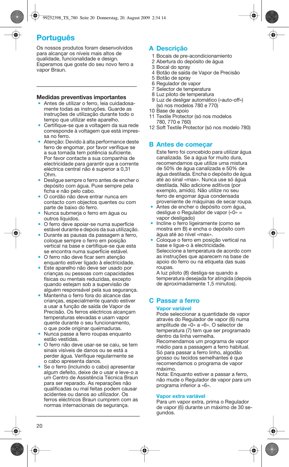 TEXSTYLE 780 - Ferro de passar BRAUN - Manual de utilização gratuito